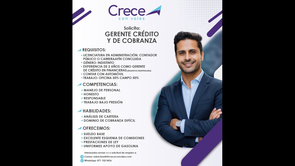 Experiencia INDISPENSABLE como Gerente en financiera de VALES